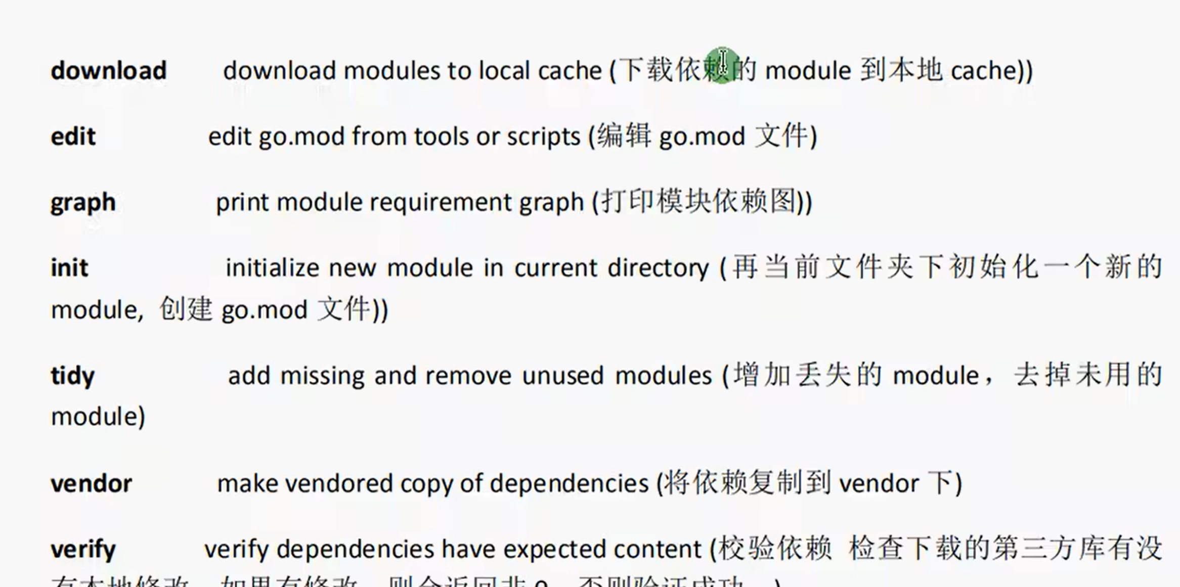 包(package) 是多个Go源码的集合,是一种高级的代码复用方案,Go语言为我们提供了很多内置包,如fmt,strconv,strings,sort,errors,time,encoding/json,os,io等。 **Golang 中的包可以分为三种** 1系统内置包 2自定义包 3第三方包 **系统内置包** Golang语言给我们提供的内置包,引入后可以直接使用,如fmt,strconv strings **自定义包** 开发者自己写的 **第三方包** 属于自定义包的一种,需要下载安装到本地后才可以使用。 ## Golang 包管理工具 go mod ### go mod init 初始化项目 实际项目开发中我们首先要在我们项目目录中用go mod 命令生成一个 go.mod 文件管理我们项目的依赖。 比如我们的golang项目文件要放在了 itying 这个文件夹,这个时候我们需要在 itying 文件夹里面使用go mod 命令生成一个 go.mod 文件  ## golang 中使用第三方包 我们可以在 https://pkg.go.dev/ 查找看常见的golang第三方包 ### 安装包 第一种方法 go get 包名称(全局) ``` go get 第三方包的地址 ``` ###第二种方法 go mod download (全局) ``` go mod download ``` ### 第三种方法 将依赖复制到当前项目的verdor 下 ``` go mod vendor ``` ## go mod 命令  ## 包名 和 文件名不一致的情况