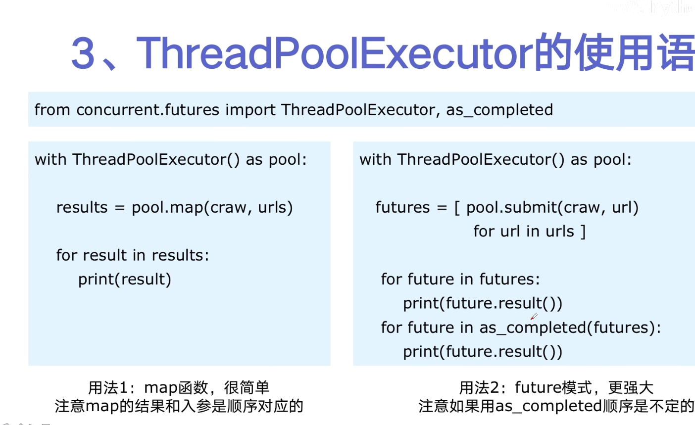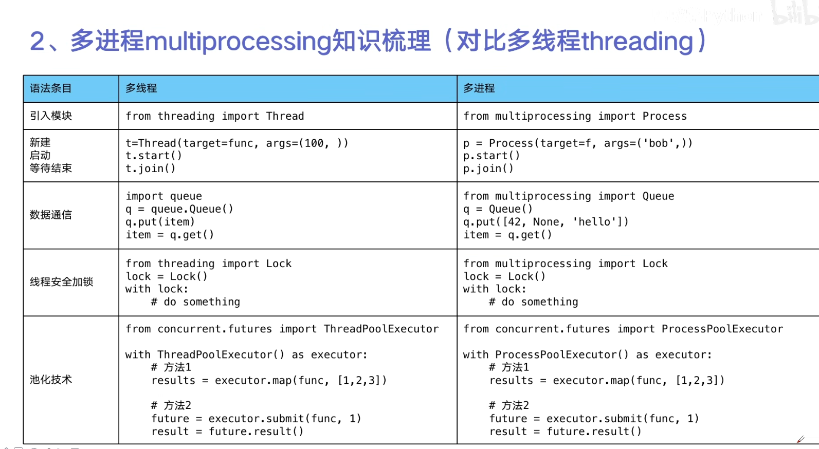 # 多线程 thread  # 多线程 数据通信的 queue.Queue  # 线程安全问题  # 线程池 ThreadPoolExecutor    # 多进程 multiprocessing   # 协程 异步IO  ## asyncio