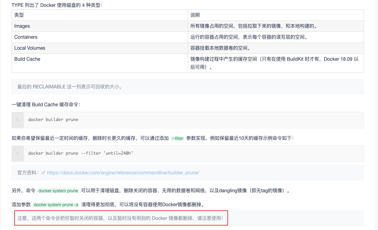 docker system df 查看Docker 的磁盘情况 ``` //一键清理 cache 的缓存 docker builder prune ```