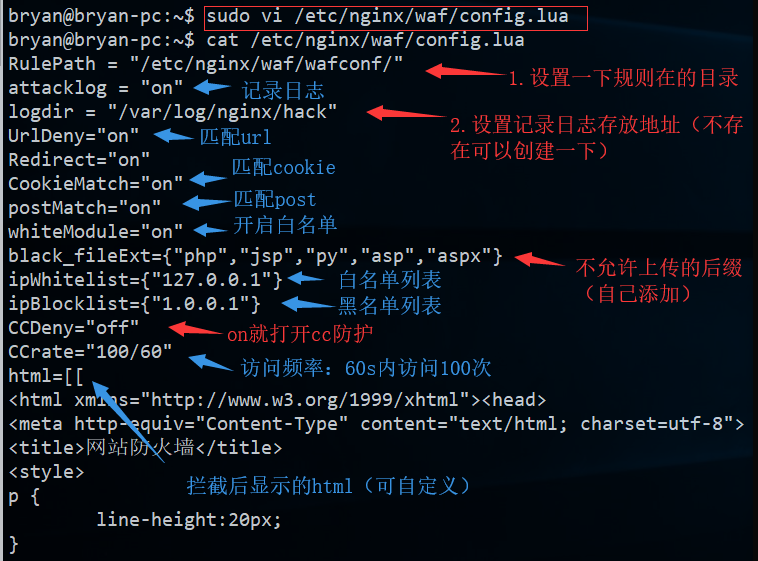 # ngx_lua_waf 资源 开源仓库:https://github.com/loveshell/ngx_lua_waf 使用说明:https://github.com/loveshell/ngx_lua_waf/blob/master/README.md # ngx_lua_waf 下载 ``` ## ngx_lua_waf 下载及目录结构 $ cd /usr/local/nginx/conf/vhost/ # 进入 vhost目录 $ wget https://github.com/loveshell/ngx_lua_waf/archive/master.zip #下载 $ unzip master.zip #解压 $ mv ngx_lua_waf-master waf #移动并重命文件夹名字为 waf ``` 假设当前waf存放目录为 `/usr/local/nginx/conf/vhost/`; ``` root@localhost:/usr/local/nginx/conf/vhost/waf# tree -a . ├── .gitattributes ├── .gitignore ├── README.md ├── config.lua ├── init.lua ├── install.sh ├── waf.lua └── wafconf ├── args ├── cookie ├── post ├── url ├── user-agent └── whiteurl 1 directory, 13 files ``` # ngx_lua_waf 的配置文件说明 `config.lua` 是该waf的主配置文件,用以设置参数及对应行为,`on`即代表开启功能,`off`代表关闭功能; ``` RulePath = "/usr/local/nginx/conf/vhost/waf/wafconf/" #路径对应的是 wafconf 的位置; attacklog = "off" logdir = "/home/wwwlogs/limbopro.com/waf/" # 设置日志存放路径 博主设置在 nginx 下 waf UrlDeny="off" Redirect="off" CookieMatch="on" postMatch="off" whiteModule="off" black_fileExt={"php","jsp"} ipWhitelist={"127.0.0.1","62.11.132.44","12.65.27.75"} ipBlocklist={"1.0.0.1"} CCDeny="on" CCrate="100/60" html= ```  其中 CCrate="100/60" 中的 `100/60` 代表一分钟(60秒)内同一页面刷新100次则封禁直到这一分钟结束,假设你在20秒刷了100次,则剩下的40秒将会被封禁; # 配置 nginx.conf 假设 nginx 的vhost文件夹路径假设为:/usr/local/nginx/conf/vhost/,在 limbopro.com.conf 的 http 段添加(即最顶部): ``` ##WAF 配置资源引用开始 lua_package_path "/usr/local/nginx/conf/vhost/waf/?.lua;;"; lua_shared_dict limit 20m; init_by_lua_file /usr/local/nginx/conf/vhost/waf/init.lua; access_by_lua_file /usr/local/nginx/conf/vhost/waf/waf.lua; ##WAF 配置资源引用结束 server { listen 443 ssl http2; listen [::]:80; server_name limbopro.com; ... ``` 重启 nginx,大功告成; vhost 文件夹的一些说明:Virtual Host,虚拟主机(Virtual Host)可以在一台服务器上绑定多个域名,架设多个不同的网站,一般在开发机或者要部署多个小网站的服务器上需要配置虚拟主机。nginx的虚拟主机配置其实也挺简单,为了使得配置文件清晰,可以改每一个虚拟主机建立一个配置文件,然后在主配置文件(nginx.conf)里使用include语句包含所有的虚拟主机配置文件。 # 测试结果 http://xx.xx.xx.xx/?s=../etc/passwd